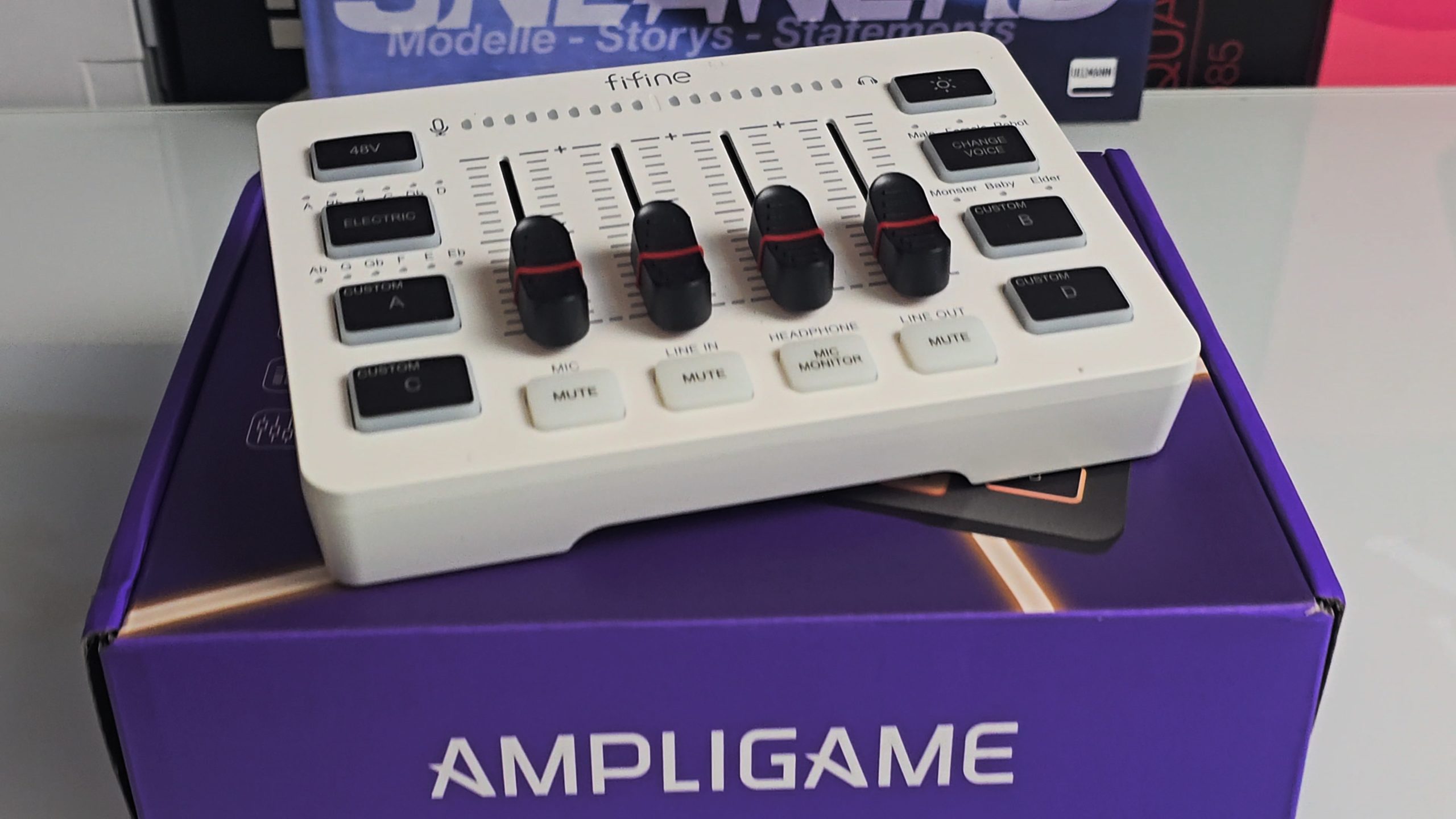 Ich suchte nach einer Lösung, mit der ich mein Setup für Streaming, Gaming und gelegentliche Podcast-Aufnahmen ohne viel Aufwand verbessern kann-und dann kamen der Fifine Ambigame SC3 ins Spiel. Verpackung eingeschaltet, auf den ersten Blick angeschlossen und macht einen soliden Eindruck: Kompaktes Gerät, viele Steuerelemente, Tasten und hübsches RGB-Licht. Nicht übermäßig auffällig,