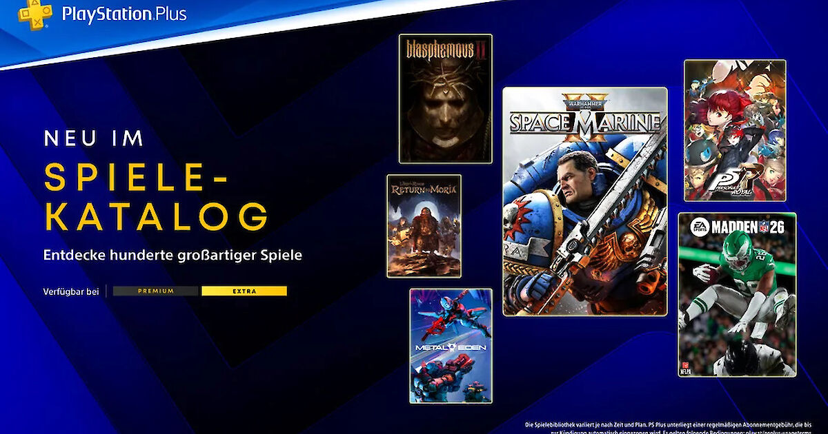 Sterben PlayStation Plus Extra- und Premium-Spiele Der März 2026 bringt frischen Nachschub für Ihre Bibliothek. Von da an 17. März 2026 Es gibt mehrere neue Spiele im Spielekatalog, darunter große Actiontitel, Rollenspiele und kreative Sandbox-Abenteuer. Enthalten sind Highlights wie Warhammer 40.000: Space Marine 2, Persona 5 Royal und das stimmungsvolle Metroidvania Blasphemous