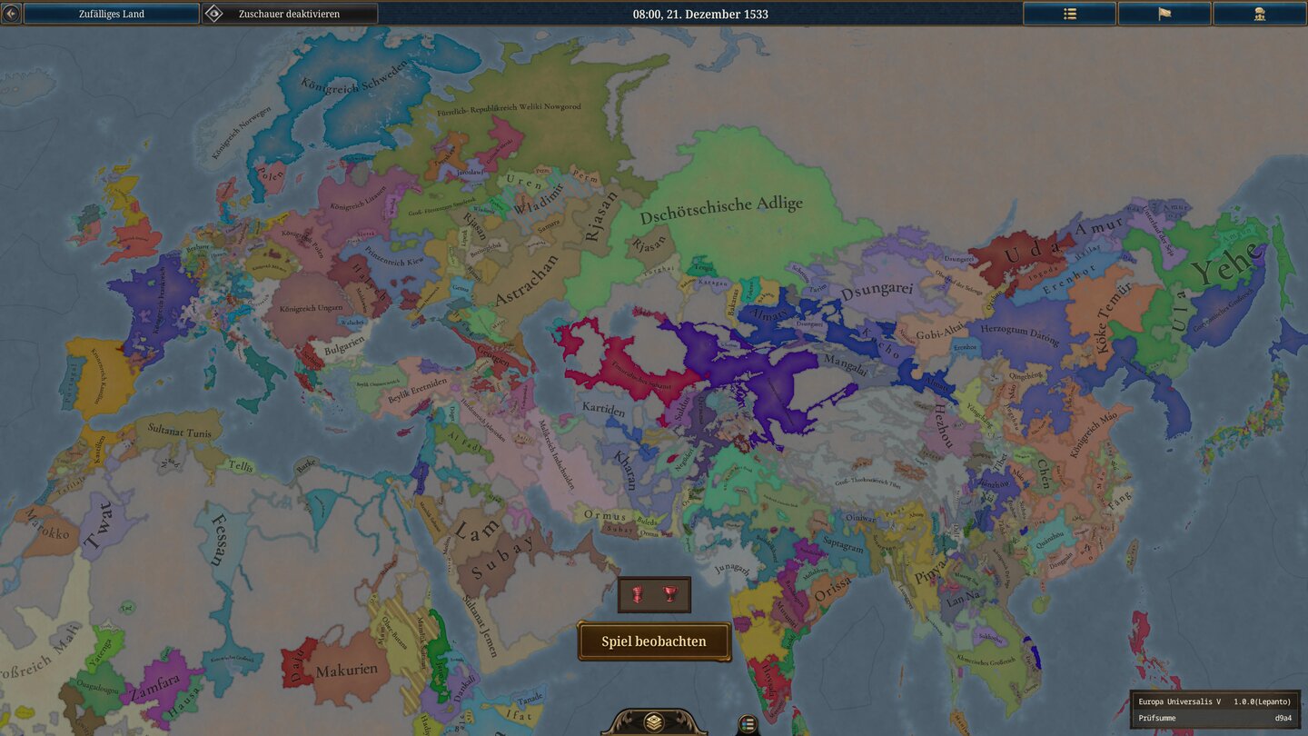 Allerdings hat dies nach zwei Jahrhunderten kaum zu einer realistischeren Entwicklung der Welt auf der größeren Weltbühne geführt. China und Russland bleiben dauerhaft zersplittert, die Osmanen können sich nicht wirklich durchsetzen, eine Fremdherrschaft über die Niederlande kommt nie zustande und wichtige Nationen wie Brandenburg und Venedig wurden von Böhmen (!) fast verschlungen. Hier stimmt also immer noch etwas nicht. Ob die Balance oder das KI-Verhalten dafür verantwortlich ist, kann ich einfach nicht sagen.