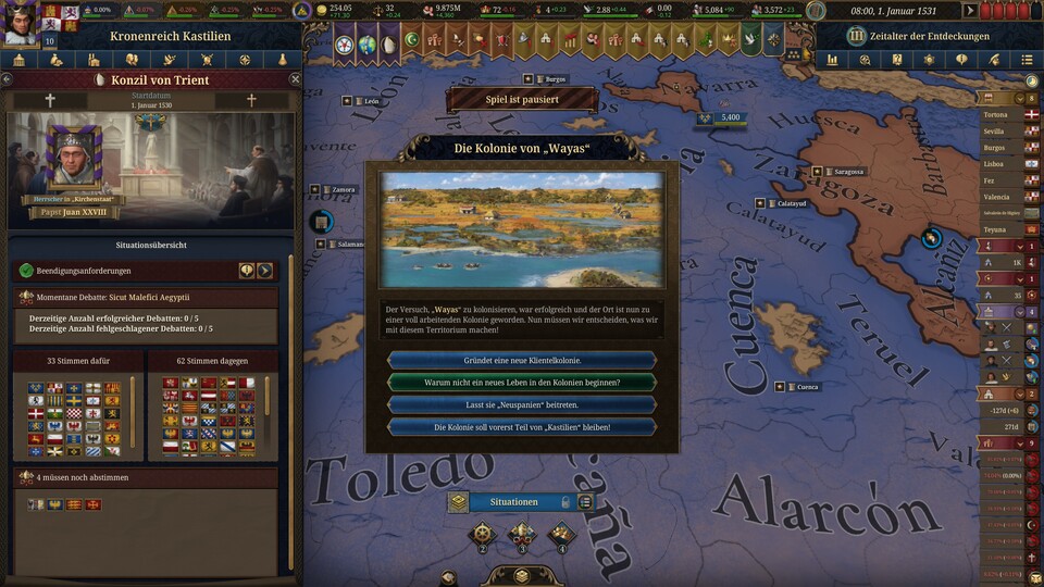 Abgesehen davon sollten Sie auch bedenken, dass das Spielerlebnis je nach Land erheblich variieren kann. In Kastilien funktionieren die täglichen Abläufe im Allgemeinen gut, aber die Probleme nehmen mit der Erkundung immer mehr zu. Der Kaiser des Heiligen Römischen Reiches hat jedoch mehr Probleme mit den „Situationen“ und der imperialen Mechanik. Im Gegensatz dazu dürfte es in vielen anderen Ländern deutlich besser oder sogar schlechter laufen.