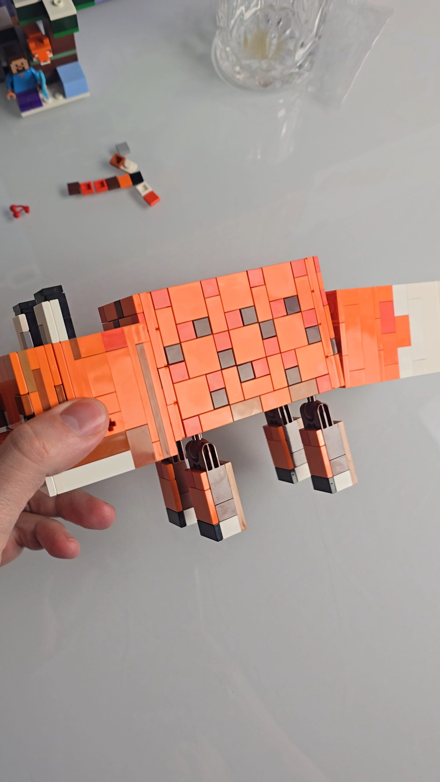 Der Aufbau ist etwas strukturierter und stärker auf die Form des Tieres ausgerichtet. Schritt für Schritt entsteht ein klotziger Fuchs, der sofort an die In-Game-Version erinnert. Gerade dieser Bauprozess macht überraschend viel Spaß, da man ständig beobachten kann, wie der typische Minecraft-Look Stück für Stück zusammengefügt wird.