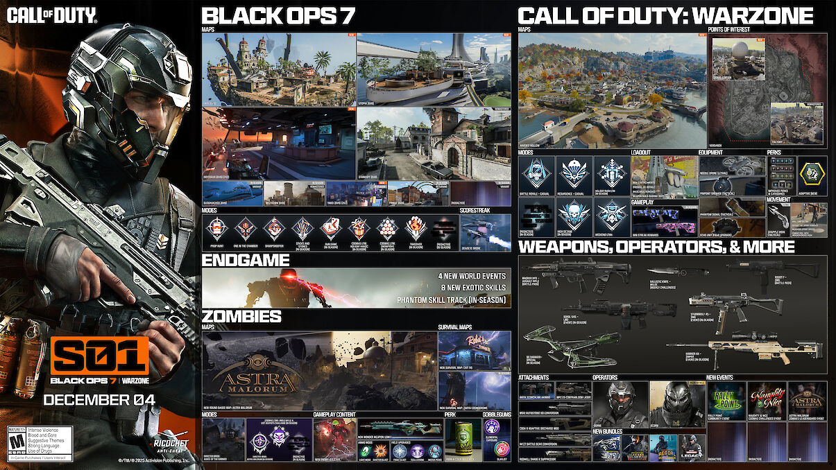 Der 4. Dezember 2025 markiert den Beginn einer Saison, die das Zeug dazu hat, Ihr gesamtes Spielerlebnis zu beeinflussen Call of Duty: Black Ops 7 Und Call of Duty: Warzone völlig zu ändern. Mit Staffel 1 erwartet Sie ein Content-Feuerwerk an brandneuen Karten, Waffen, Modi und Belohnungen – perfekt für Veteranen und